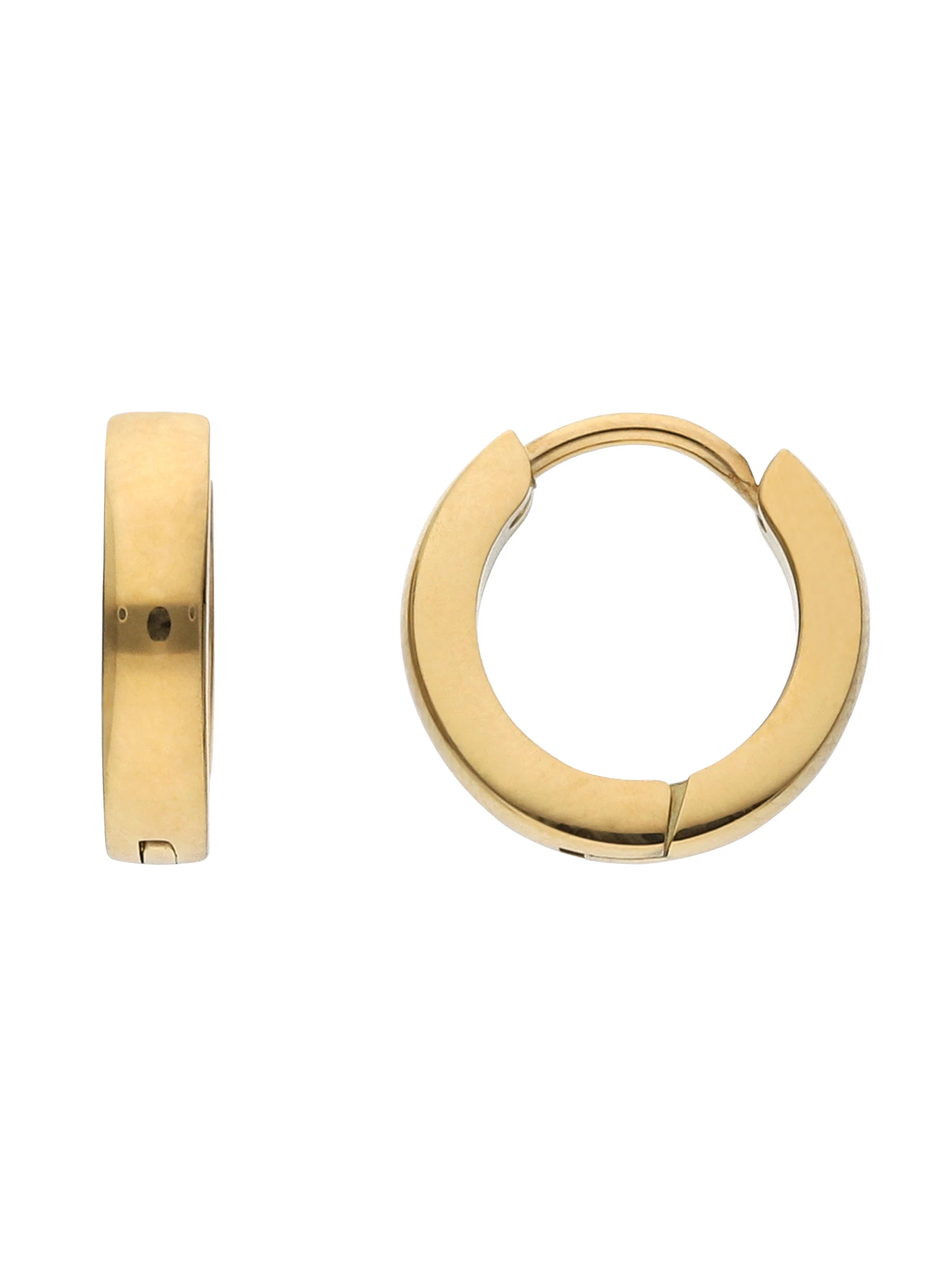 Elegant und feminin präsentiert sich diese schlichte Creole aus Edelstahl. Dieses vergoldete Schmuckstück mit klarer Linie ist die ideale Ergänzung zur Mode für jeden Tag: vielseitig kombinierbar, stilsicher und echt.