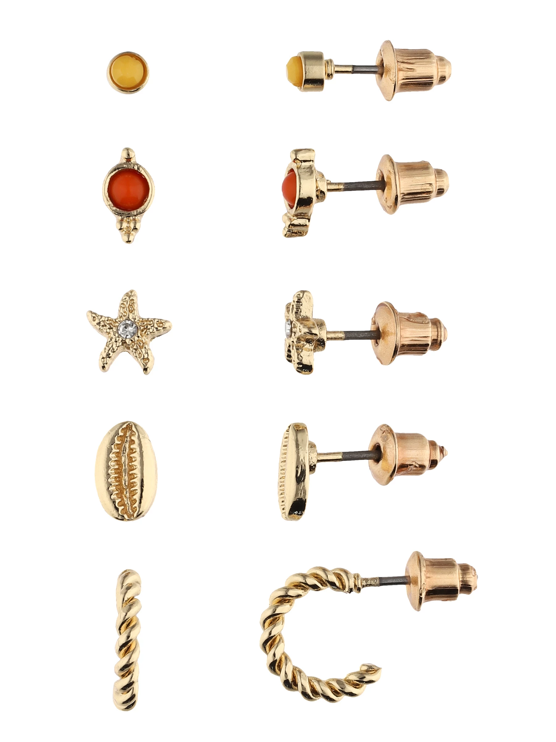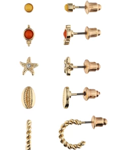 Accessories Goldglänzendes Ohrstecker-Set Mit Muschel- Und Seestern-Motiv, Strassteine, Sommerlich
