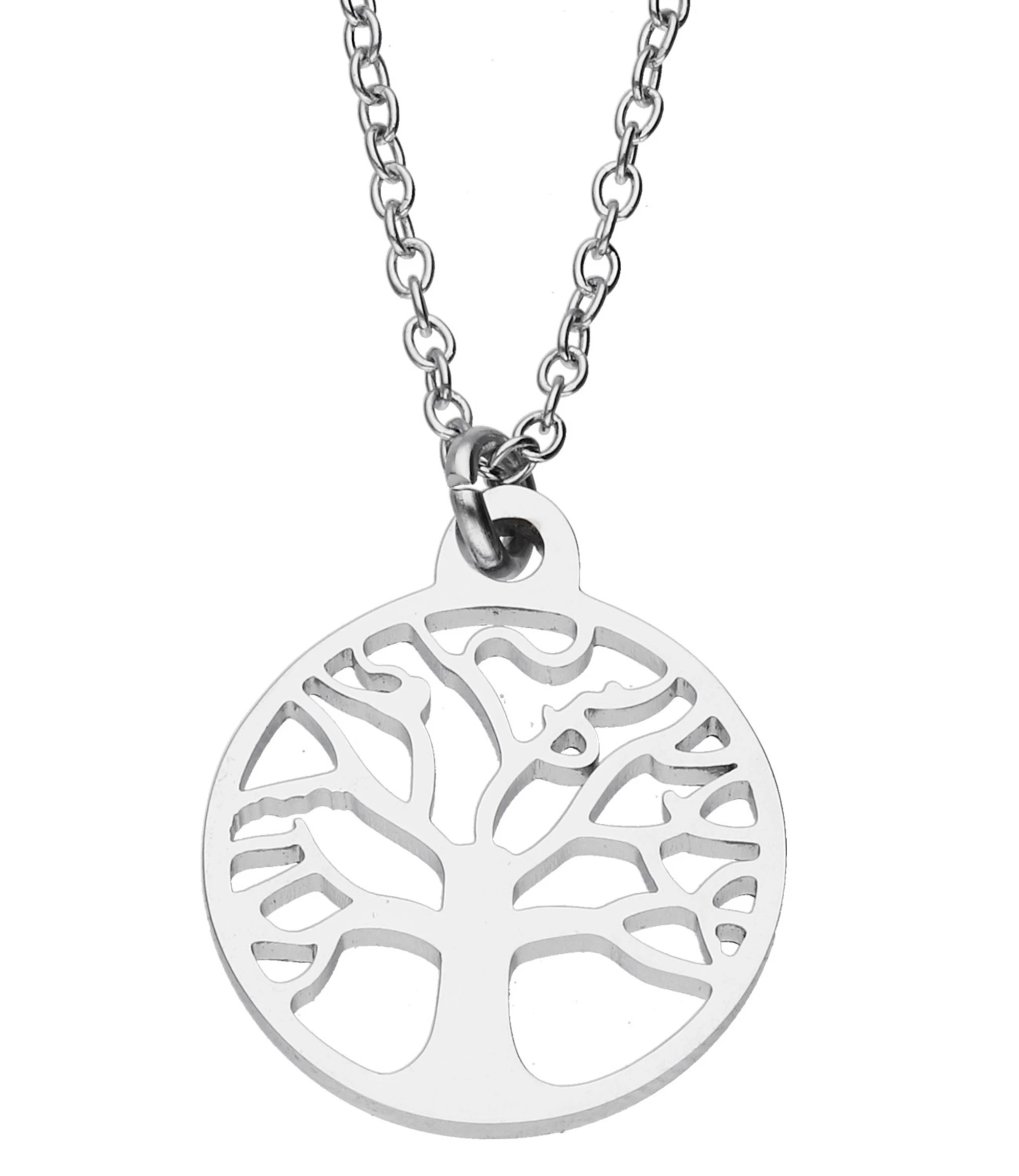 Accessories Halskette Aus Edelstahl Mit Cut-Out-Anhänger Und Baum-Motiv