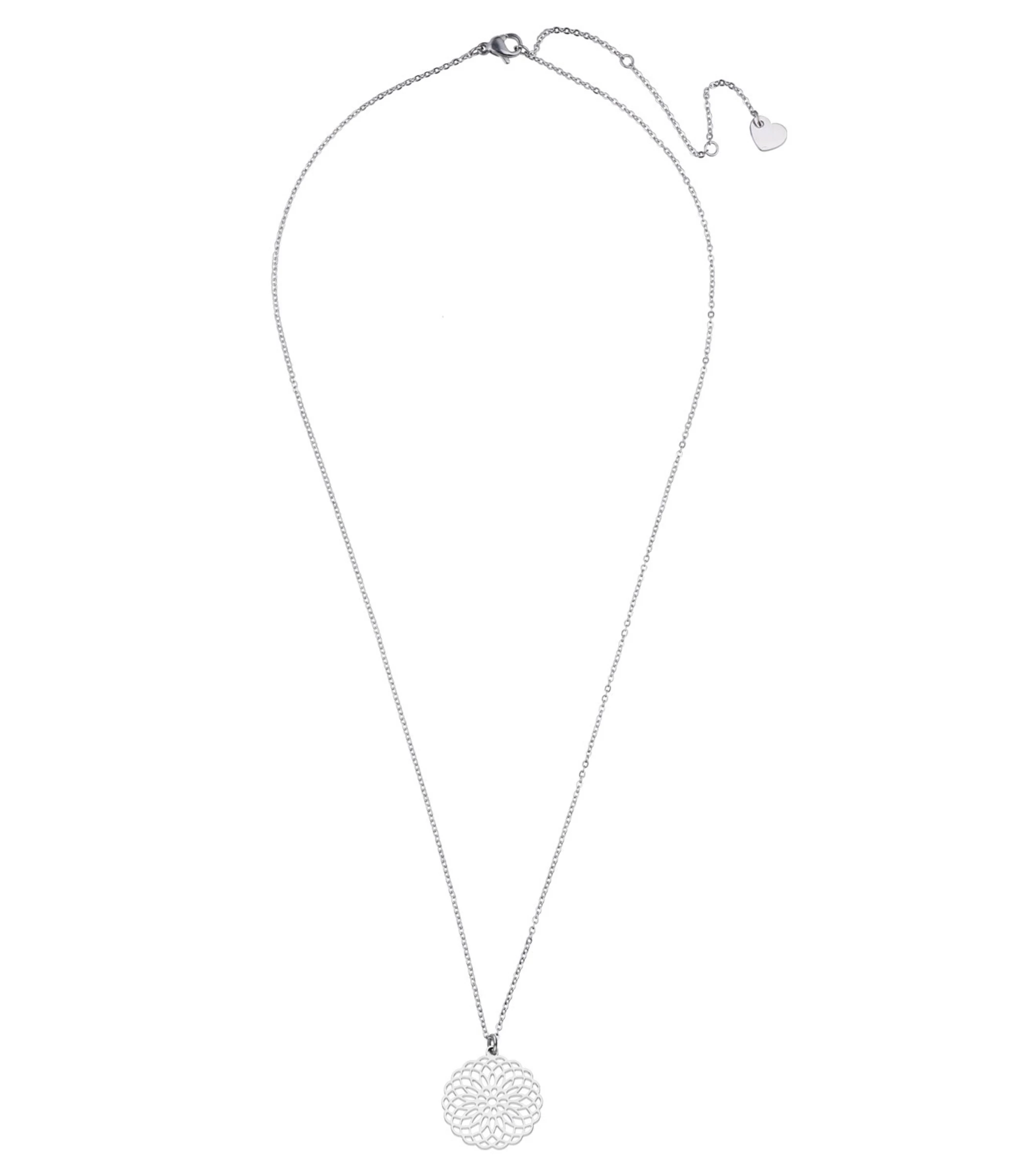 Ein echtes Statement of Style ist diese schöne Halskette aus Edelstahl. Versehen mit einem floralem Anhänger in Cut-Out-Optik ist das modische Accessoire der perfekte Begleiter für jeden Tag.