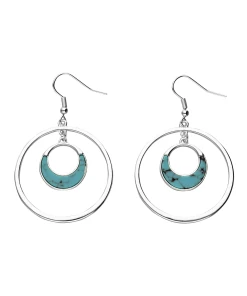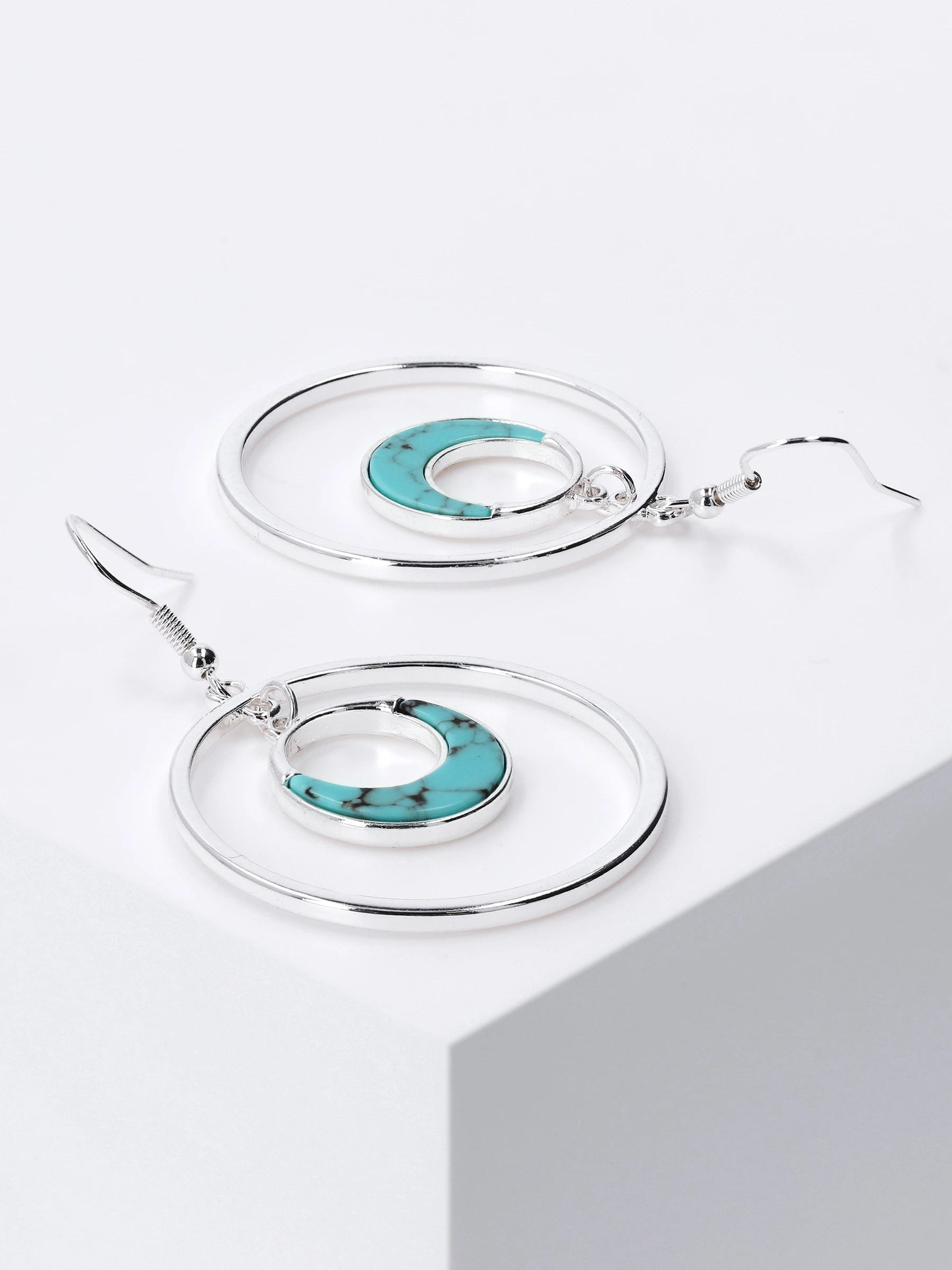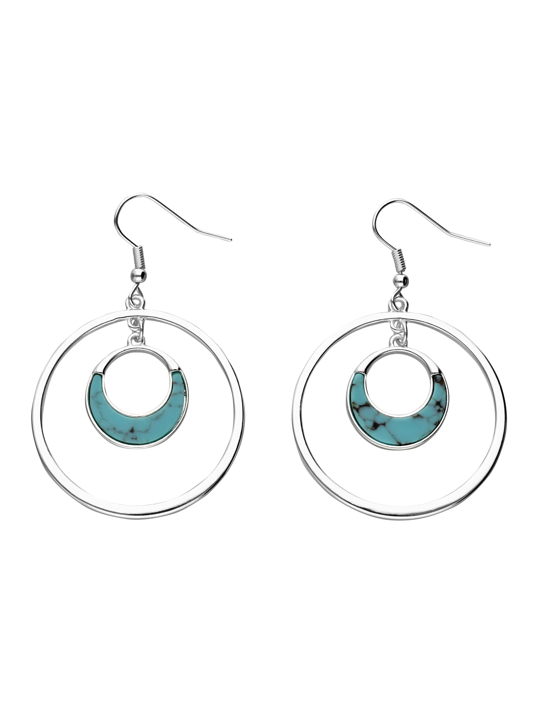 Modischer Ohrhänger mit einem großen Ring und einem kleineren mit Howlith-Schmucksteinen verzierten Ring. Der Ohrschmuck lässt sich vielfältig kombinieren und passt zu den verschiedenste Anlässen.