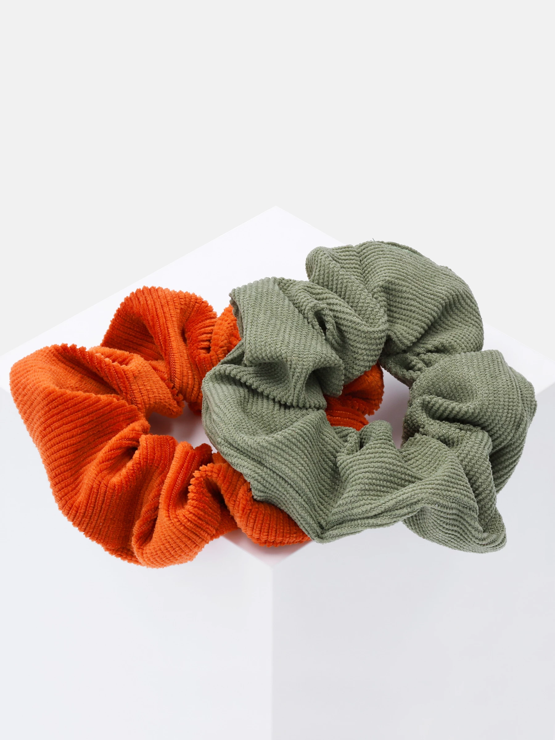 Scrunchies sind das Must-have der Saison! Dieses schöne Scrunchie-Set, in der Farbe orange und grün, eignet sich hervorragend für die verschiedensten Frisuren wie Dutt oder Ponytail. Die elastischen Accessoires verfügen über eine hervorragende Trageeigenschaft und bieten optimalen Halt.