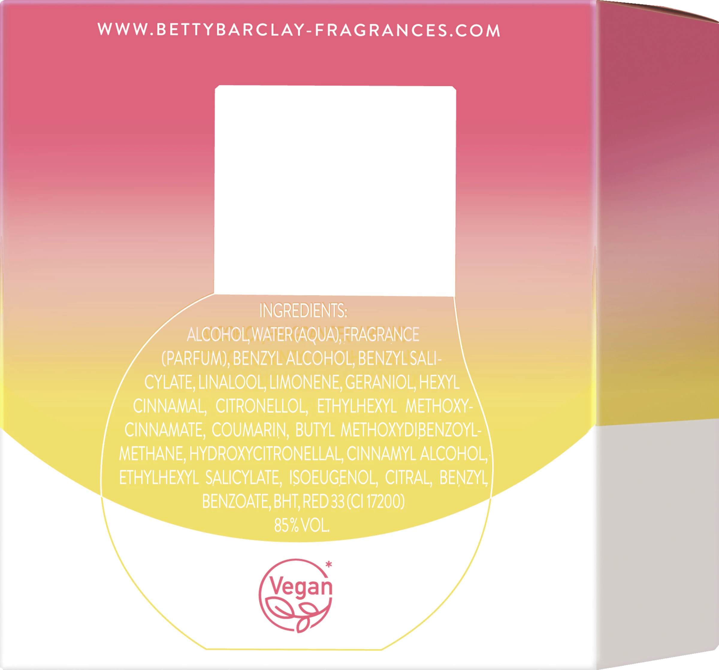 ALCOHOL,WATER (AQUA),FRAGRANCE (PARFUM),BENZYL ALCOHOL,BENZYL SALICYLATE,LINALOOL,LIMONENE,GERANIOL,HEXYL CINNAMAL,CITRONELLOL,ETHYLHEXYL METHOXYCINNAMATE,COUMARIN,BUTYL METHOXYDIBENZOYLMETHANE,HYDROXYCITRONELLAL,CINNAMYL ALCOHOL,ETHYLHEXYL SALICYLATE,ISOEUGENOL,CITRAL,BENZYL BENZOATE,BHT,RED 33 (CI 17200)