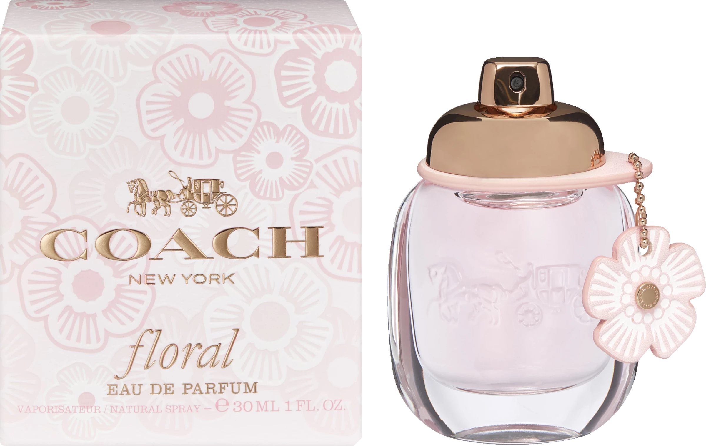 Coach Floral Eau de Parfum eine herrlich unbeschwerte Inszenierung – feminin, floral und herrlich unbeschwert. So sonnig und sorglos wie ein warmer Sommertag, von dem wir uns wünschen, dass er nie zu Ende geht. Die Komposition eröffnet mit prickelnden Zitrus-Noten, einer Prise Pink Pepper und fruchtigem Ananas-Sorbet. Im Herzen betört ein Bouquet aus Teerose, der Signatur-Essenz der Coach-Damendüfte, Jasmin Sambac und Gardenie. In der schmeichelnden Basis vereinen sich elegante Holznuancen mit einer sinnlichen Patschuli-Essenz und Moschus.