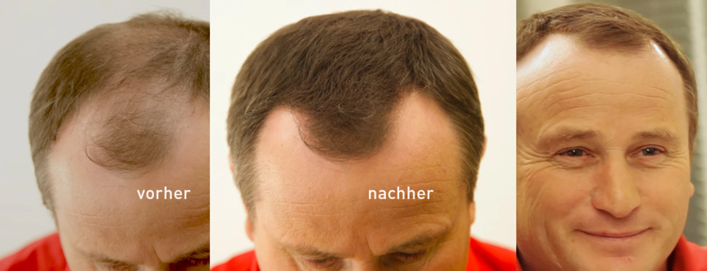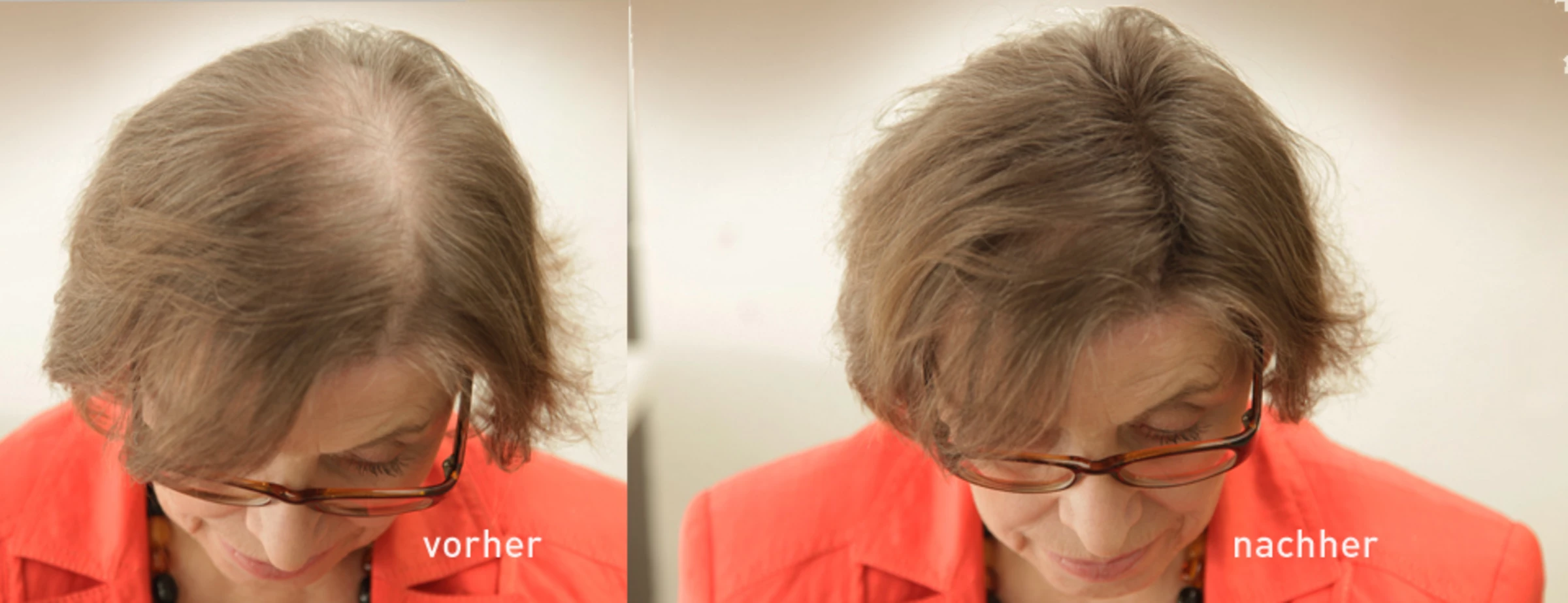 Sekundenschnell dichtes Haar, durch die Wirkung spezieller Microfasern.