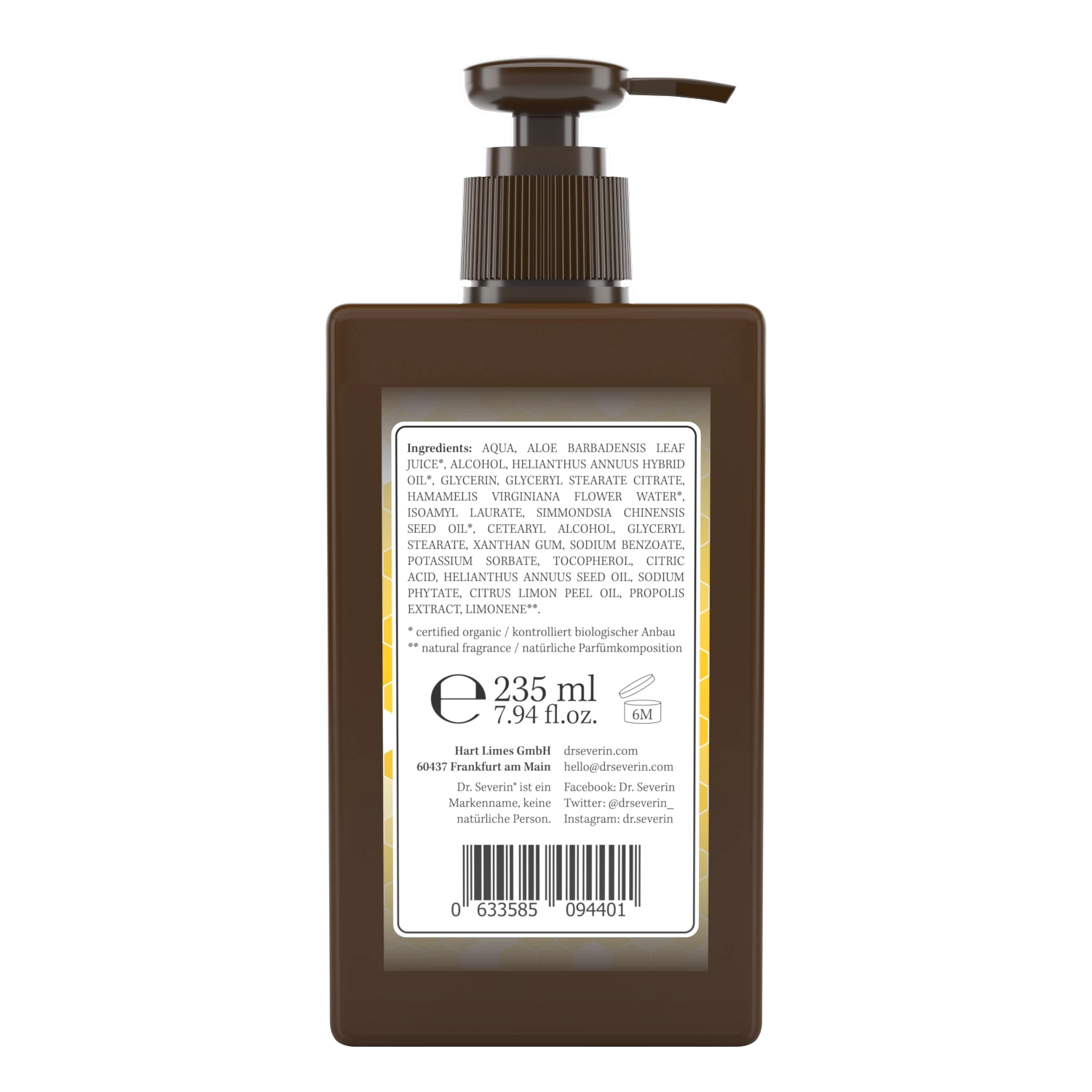 Aqua, Aloe Barbadensis Leaf Juice*, Alcohol, Helianthus Annuus Hybrid Oil*, Glycerin, Glyceryl Stearate Citrate, Hamamelis Virginiana Flower Water*, Isoamyl Laurate, Simmondsia Chinensis Seed Oil*, Cetearyl Alcohol, Glyceryl Stearate, Xanthan Gum, Sodium Benzoate, Potassium Sorbate, Tocopherol, Citric Acid, Helianthus Annuus Seed Oil, Sodium Phytate, Citrus Limon Peel Oil , Propolis Extract, Limonene**