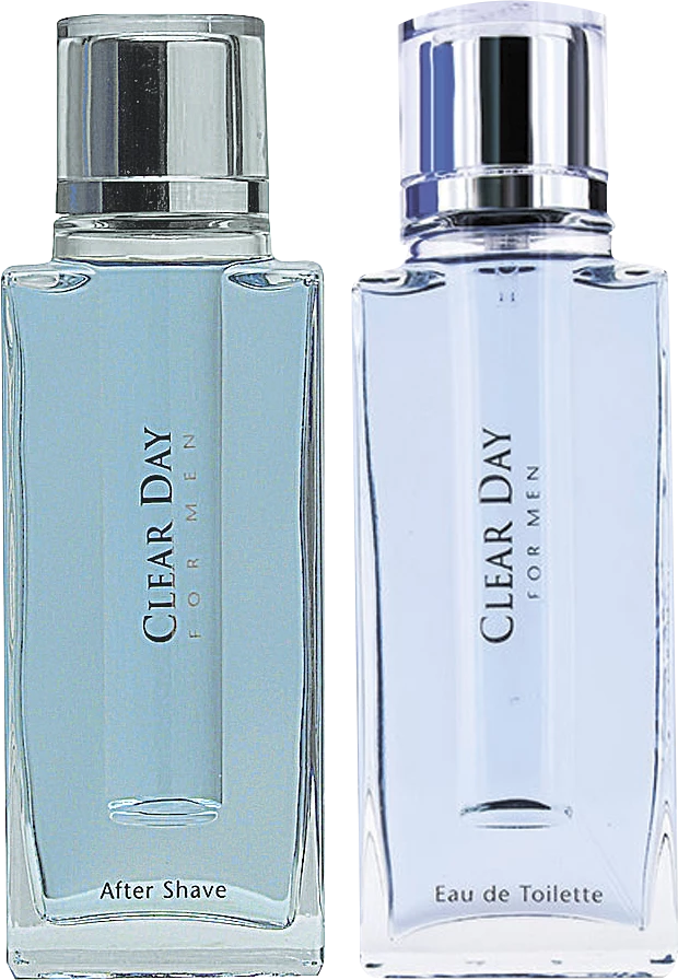 Clear Day Eau de Toilette 100 ml: Alcohol Denat., Aqua/Water/Eau, Fragrance (Parfum), Linalool, Limonene, Eugenol, Citronellol, Coumarin, Geraniol, Cinnamyl Alcohol, Citral, CI 60730 (Ext. Violet 2), CI 42090 (Blue 1), CI 14700 (Red 4)