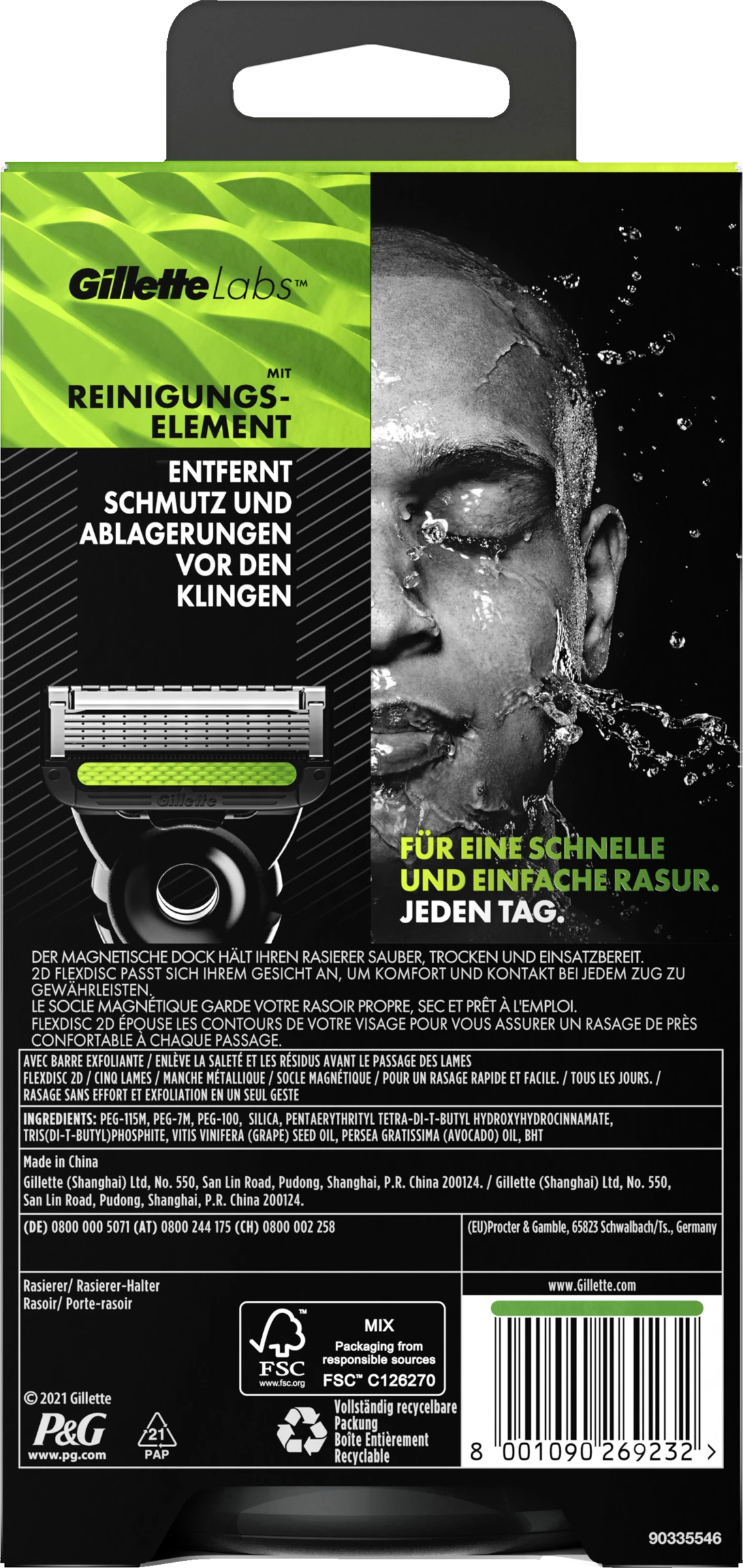 Gillette Labs mit Reinigungs-Element ist der weltweit erste Rasierer mit im Griff integrierter Reinigungs-Technologie für eine mühelose und saubere Rasur in jedem Zug.