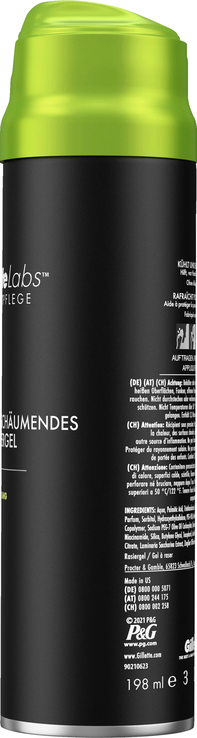 Das Gillette Labs schnell aufschäumende Rasiergel kühlt und beruhigt die Haut und hilft, die Haut beim Rasieren zu schützen. Es wird ohne Alkohol oder Farbstoffe hergestellt.