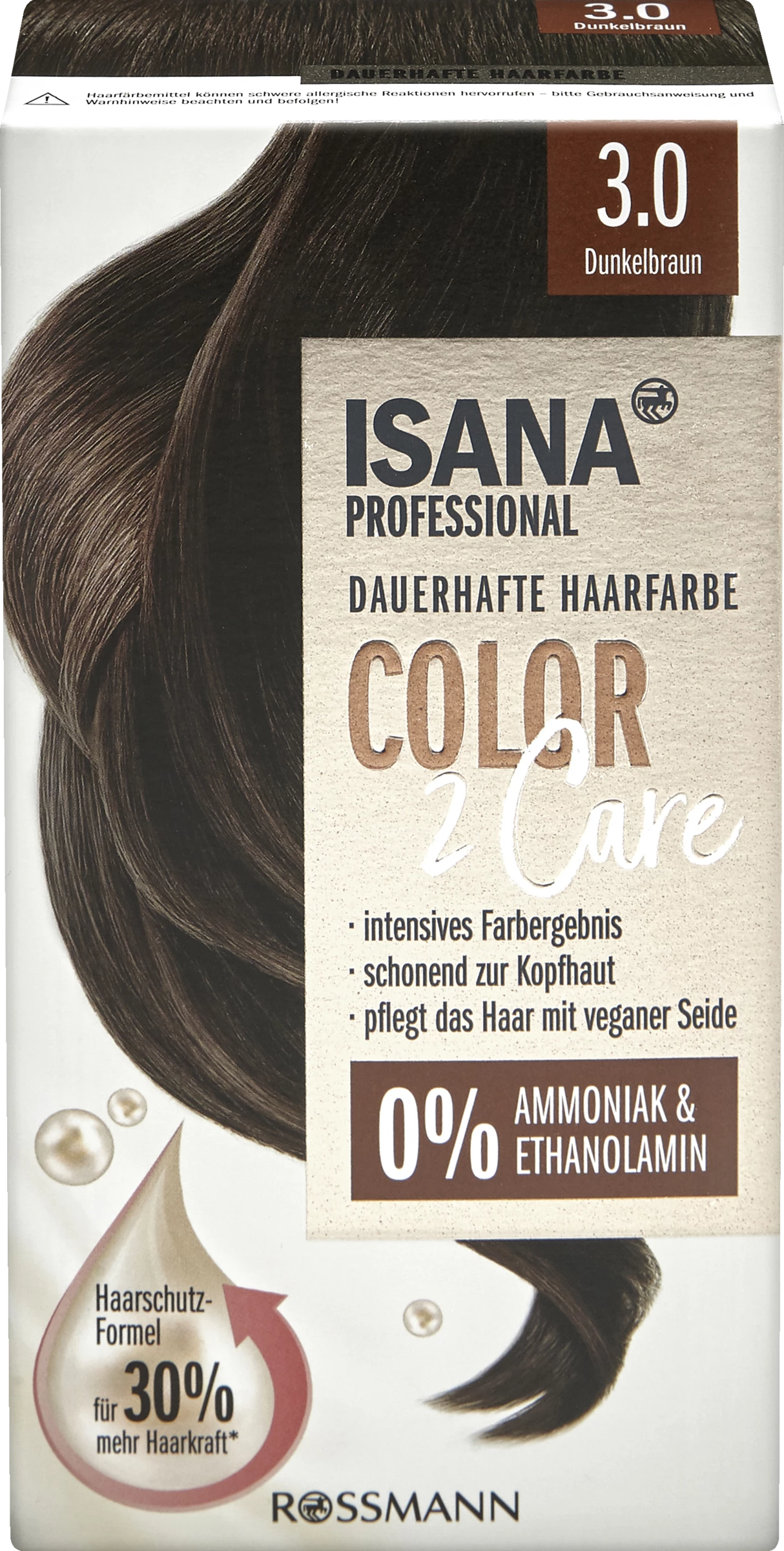 Innovative Coloration mit Haarschutzformel. Die innovative Coloration von ISANA Color2Care vereint brilliante Farbergebnisse mit einer besonders schonenden Formulierung. Dank der Haarschutzformel wird das Haar schon während der Färbung weniger belastet. Color2Care bietet perfekte Grauhaarabdeckung und langanhaltende Farbergebnisse, dazu einen angenehmen neutralen Duft.