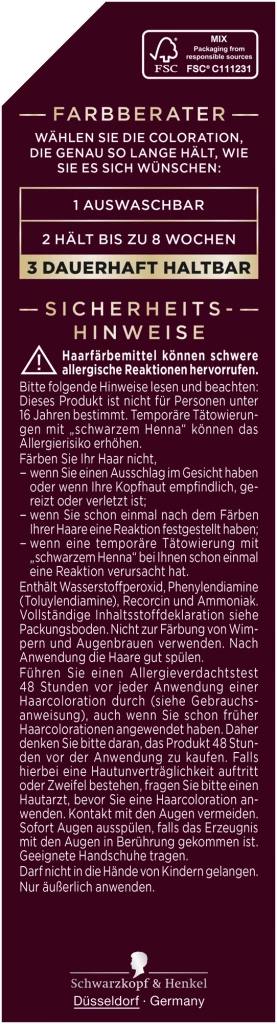 Haarfärbemittel können schwere allergische Reaktionen hervorrufen. Bitte folgende Hinweise lesen und beachten: