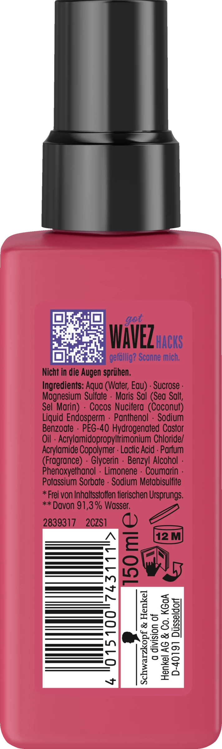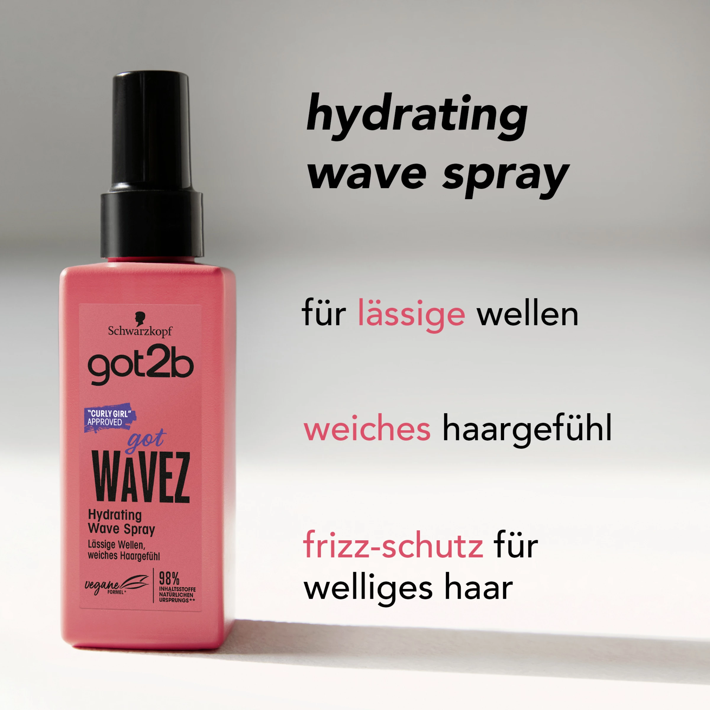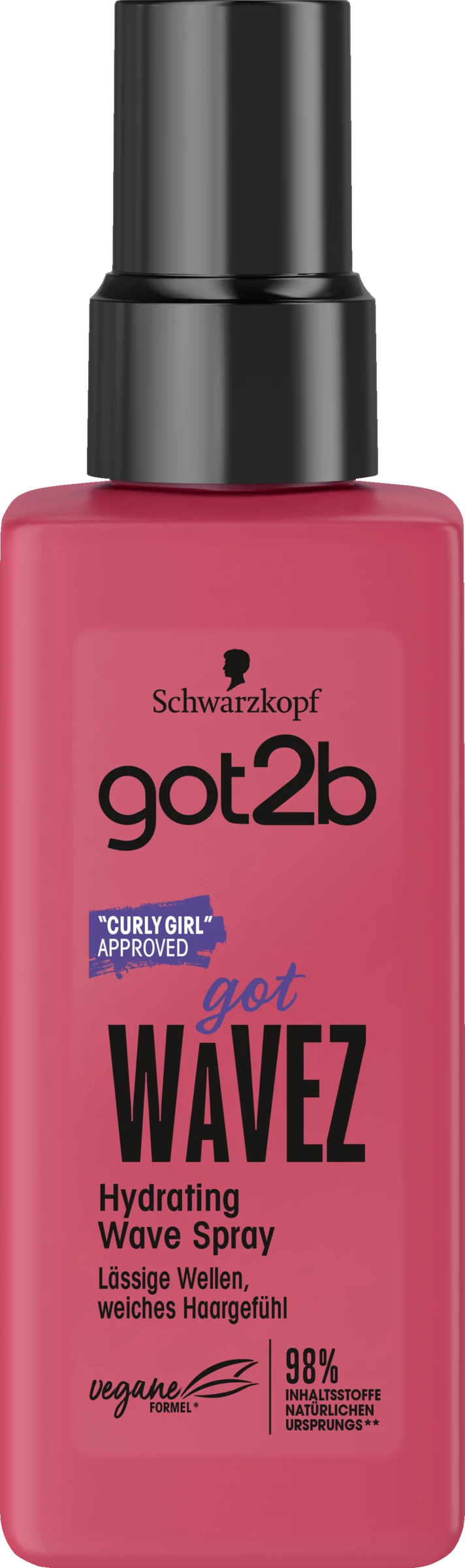 Schwarzkopf GOT2B gotWavez Hydrating Wave Spray – kreiert lässige Wellen ohne ein trockenes Haargefühl zu hinterlassen, mit Kokosnusswasser & Meeresmineralien. Das GOT2B gotWavez Hydrating Wave Spray kreiert atemberaubende, lässige Wellen und hinterlässt ein weiches, erfrischtes Haargefühl. Das Hydrating Wave Spray kombiniert eine einzigartige Mischung aus Kokosnusswasser und Meeresmineralien und verleiht dem Haar einen natürlich, lässigen Look und definierte Wellen. Vergiss Bad Hair Days!