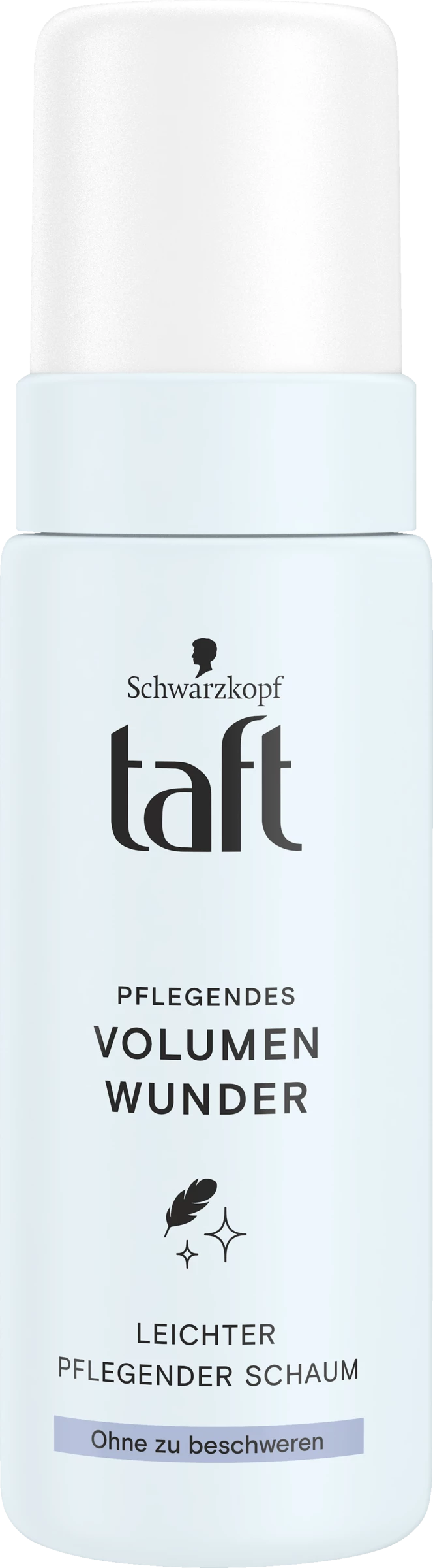 taft Pflegendes Volumen Wunder – Luftiges Volumen und Pflege für feines, plattes Haar. Der leichte pflegende Schaum verleiht dem Haar luftiges Volumen und Pflege, ohne es zu beschweren. Außerdem hilft es gegen ein trockenes Haargefühl. Der Schaum ist für feines und plattes Haar geeignet. taft Wunder, denn das Leben ist zu kurz für Bad Hair Days. Be smarter. Recycle.
