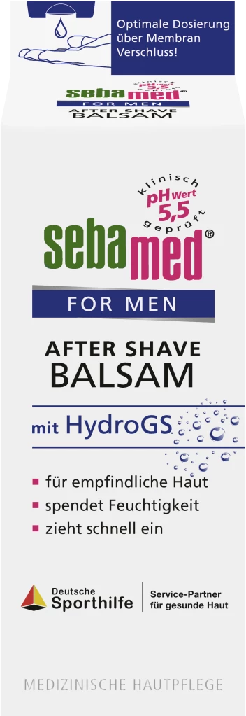 sebamed FOR MEN After Shave Balsam wurde speziell für die durch das Rasieren strapazierte, empfindliche Haut entwickelt. Der After Shave Balsam mit natürlichen Wirkstoffen eignet sich für alle Hauttypen. Mit dem Feuchtigkeitskomplex HydroGS wird die Haut widerstandsfähiger gegen äußere Stresseinflüsse. Er sorgt für Frische und Vitalität. Der Wirkstoff der Kamille (Bisabolol) unterstützt den reizlindernden Effekt zusätzlich. sebamed FOR MEN After Shave Balsam hilft gegen Rasurbrand, ist feuchtigkeitsspendend und hautberuhigend.